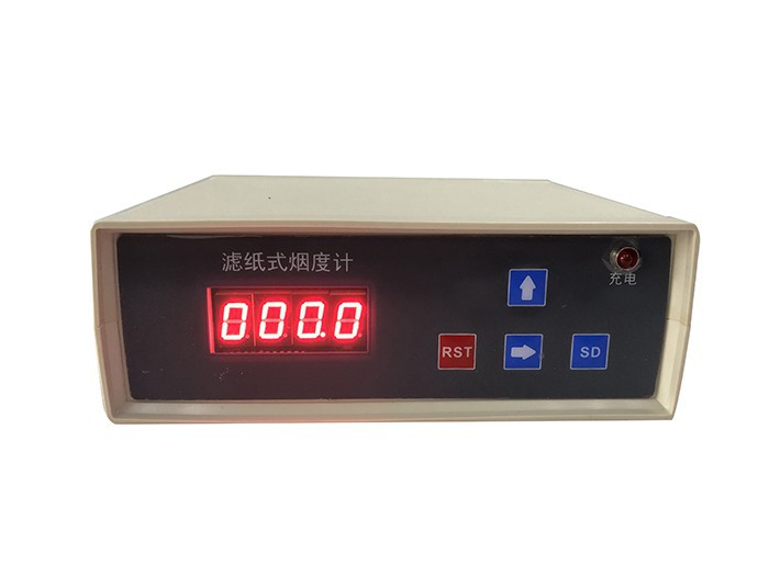 此仪器的工作原理是用一只活塞式抽气泵,从柴油机排气管中抽取定量容积(330毫升)的排气气体,使它通过一张一定面积的白色滤纸,于是排气中的碳粒就粘附在滤纸上而使滤纸染黑,然后利用光电检测装置测量滤纸上烟痕的吸光率来评定为柴油机的排气烟度。